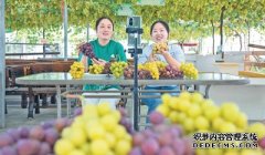 近年来,江苏省句容市大力发展葡萄种植等特色产业,建立专业合作社,引导农户统一生产标准,并探索利用网络直播等形式拓宽销售渠道,确保增产增收。图为9月3日,在句容市茅山...